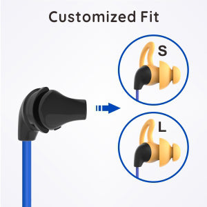 - 【Ergonomic & Customized Fit】 Ergonomic silicone ear tips with wings nestle snugly into the ears, help hold the earpiece gently but firmly inside the ear canal. Included with 2 different sizes ear tips, most people can find a perfect fit which make your ears comfortable, safe and happy.